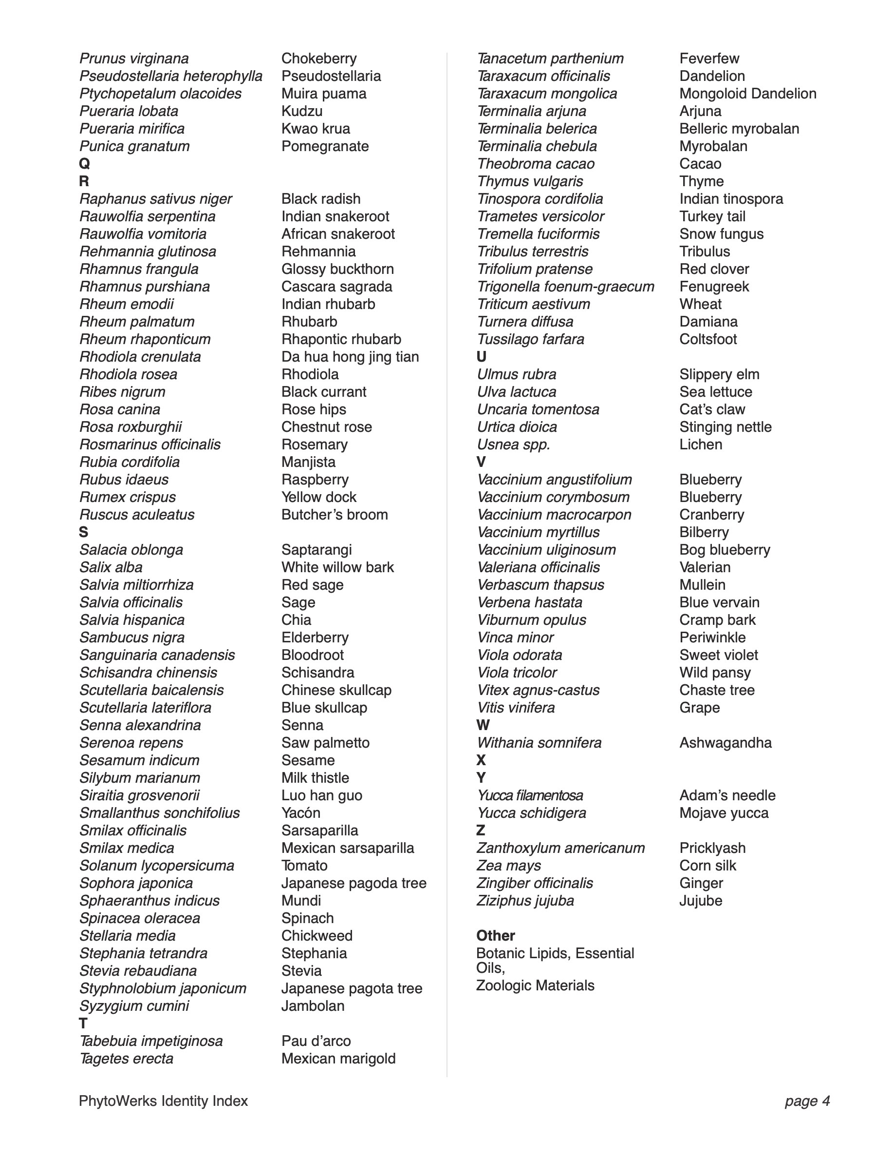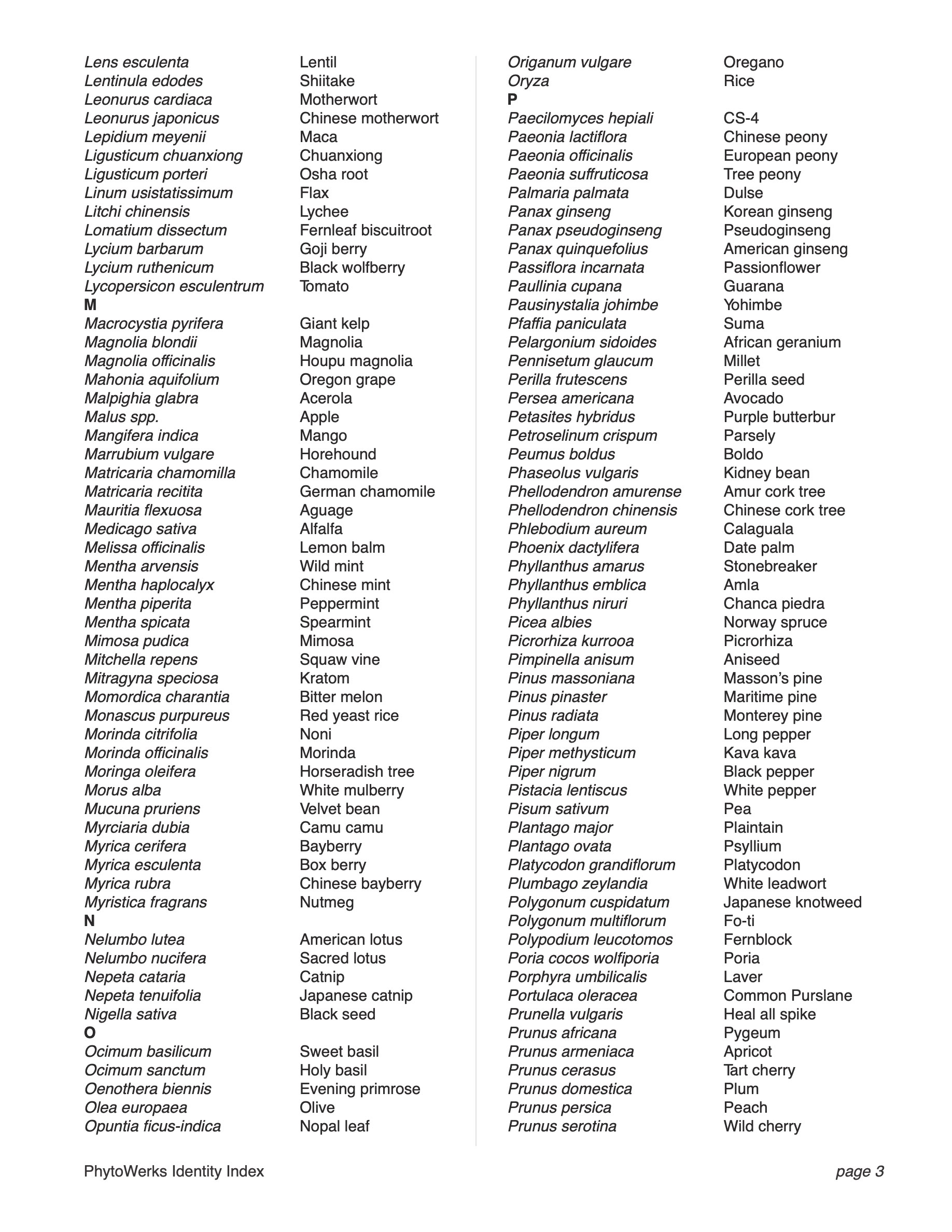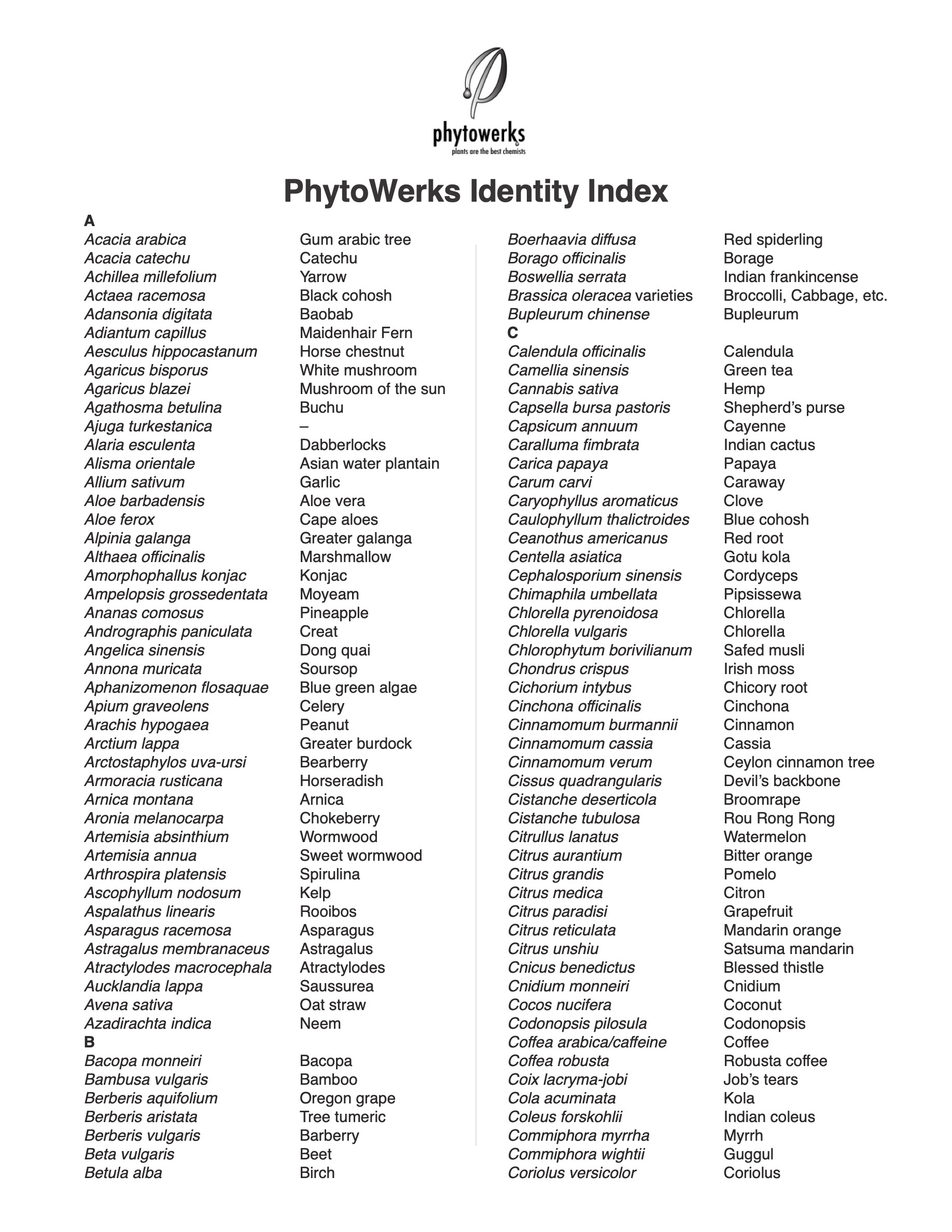 Search our 700+ Identity Index by scientific or common name to determine if the reference standard for your material is available. If not, please contact us so we can source and authenticate a suitable standard to support your quality control process.